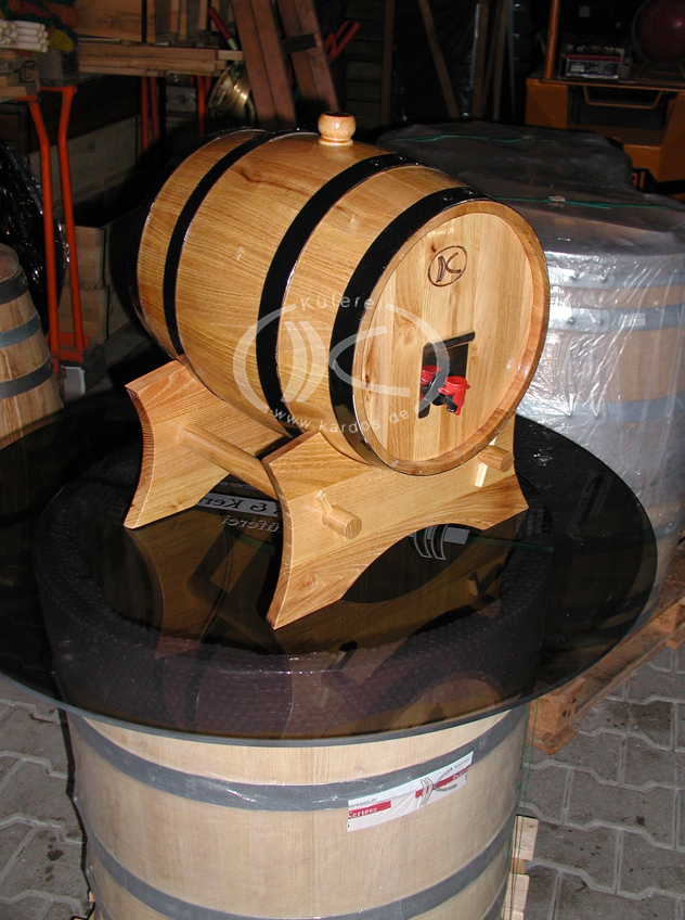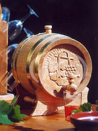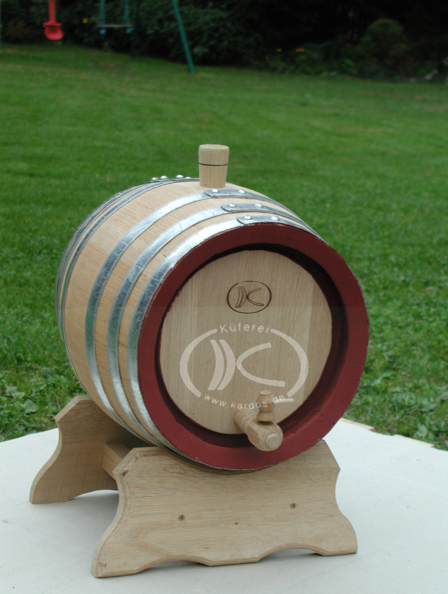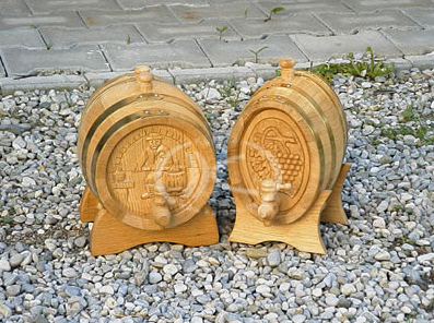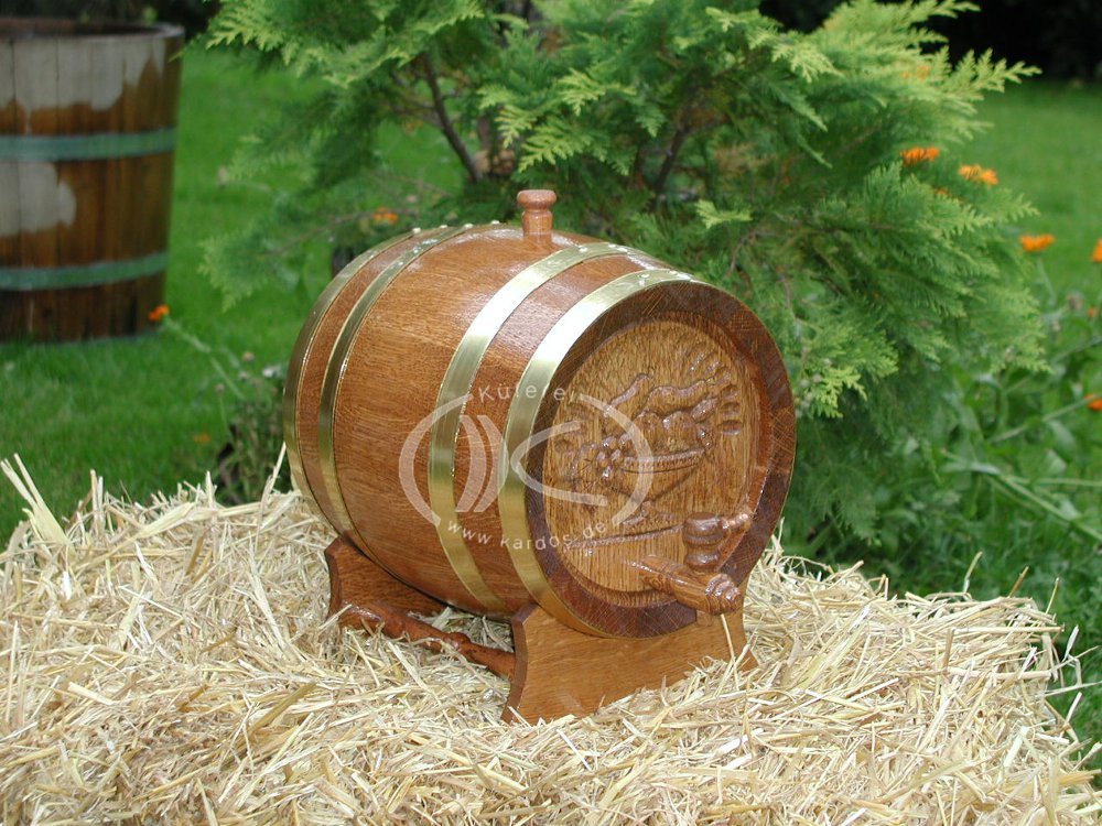 Holzfässer, Lagerfässer, Zierfässer, Partyfässer werden aus Eiche-, oder Obstholzarten wie z.B., Apfel-, Maulbeer- und Kirschholz gefertigt. Bis 5 Liter sind die Fässer teilweise mit Schnitzereien dekoriert.