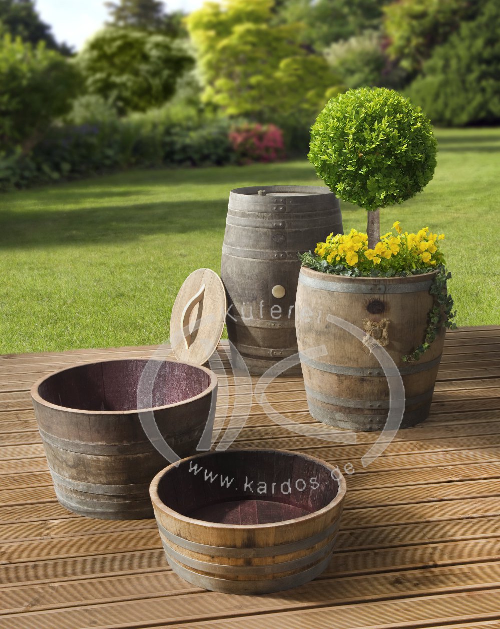 The barrels and casks for rain water are made of acacia wood with galvanised fittings. They are available in different sizes. Acacia wood does not need any impregnation, we therefore use it untreated and natural.