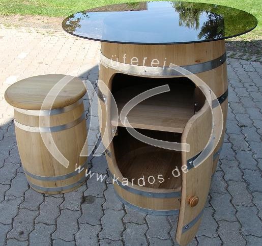 Ein dekorativer Stehtisch mit Tür und Regal für den Weinkeller oder auf Veranstaltungen ist immer nützlich. Zu diesem Fasstisch bieten wir Ihnen natürlich auch als Sitzmöglichkeit einen Sitzhocker oder Fasshocker auf die gleiche Weise gefertigt wie der Stehtisch.