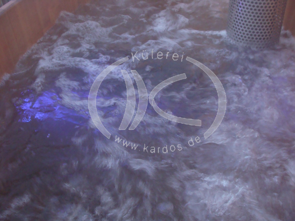 The interior for Whirl Tubs is identical with the Hot Tubs; additional with a light- and bubble system. Instead of the ladder the Whirl Tub comes with a 3-step staircase.
